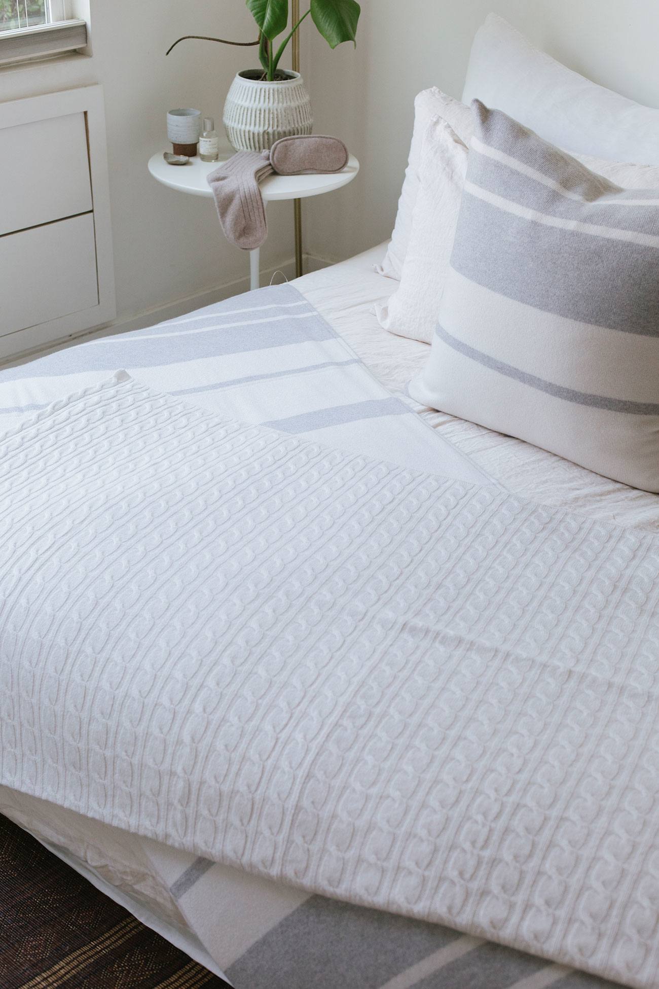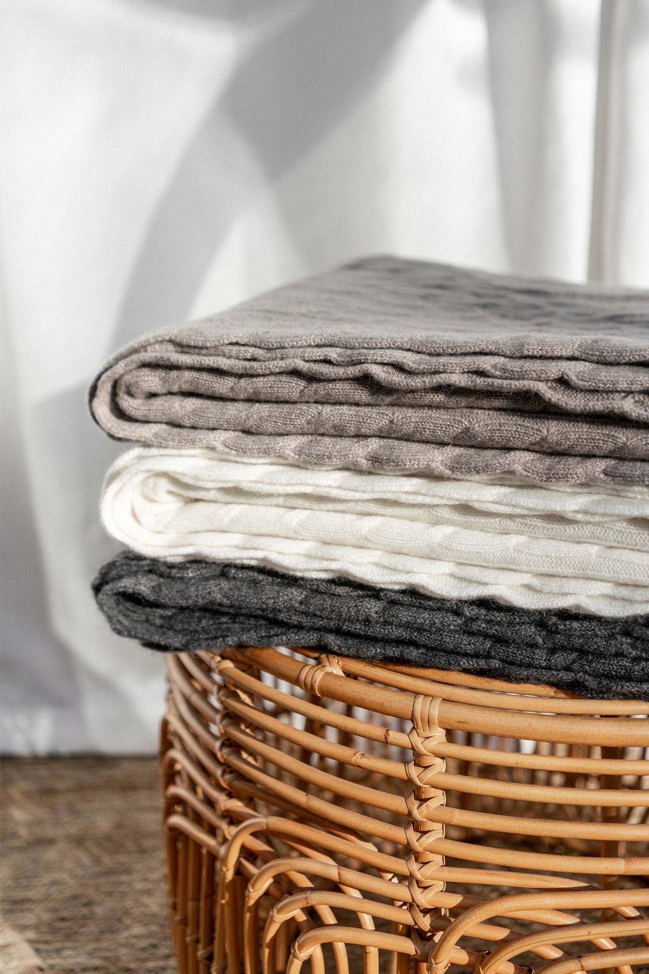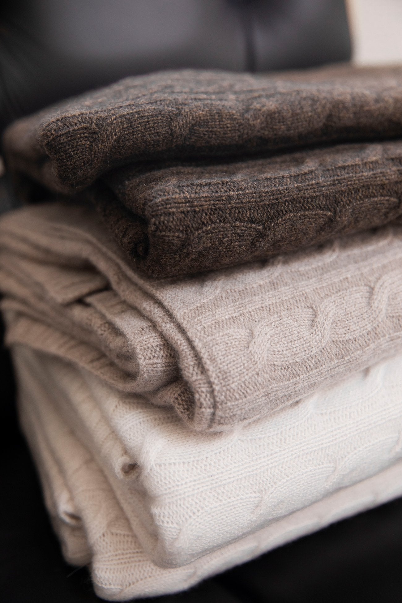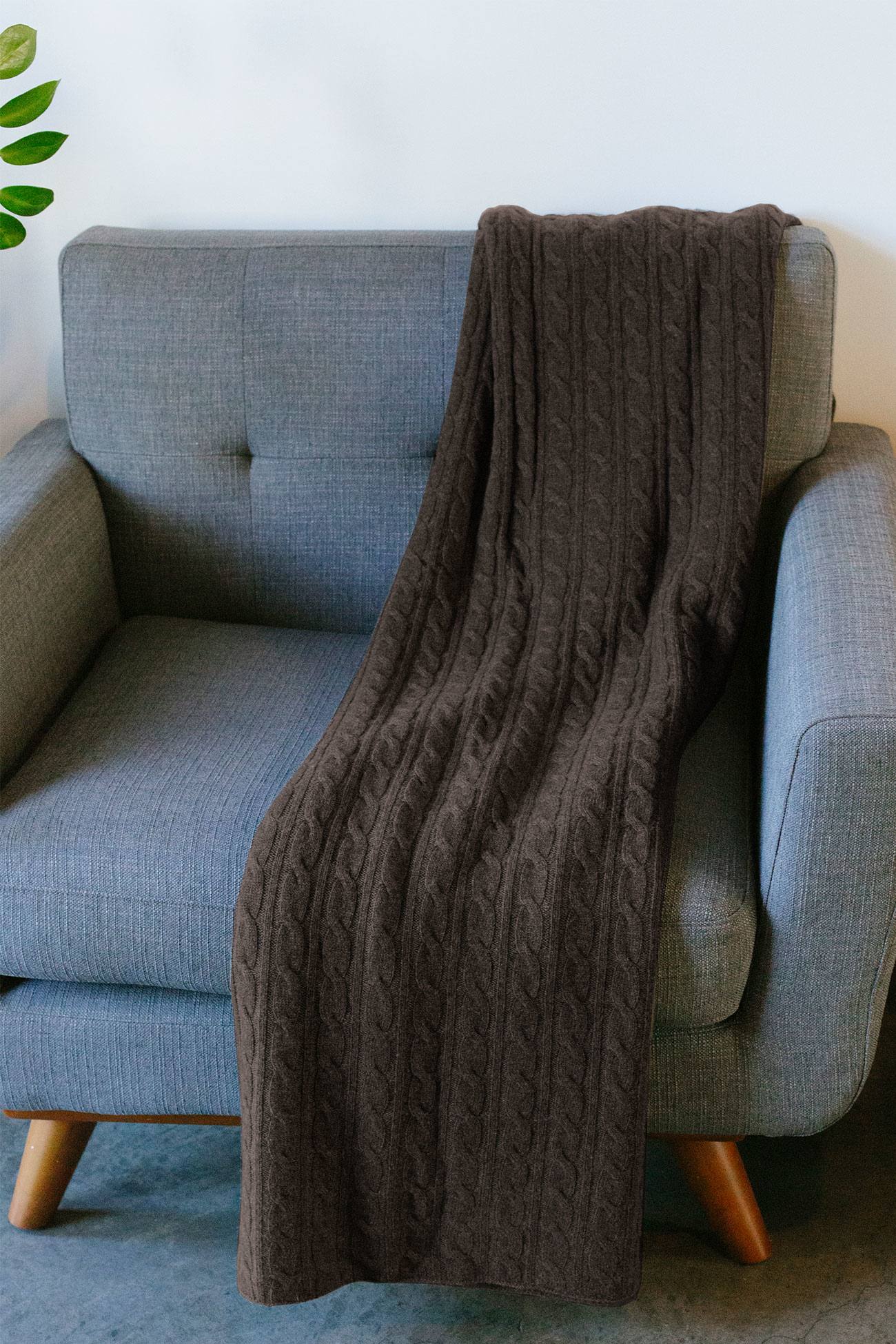 Add a touch of cashmere with our exquisitely soft cable knit blanket. This blanket makes for a luscious bed or couch throw.