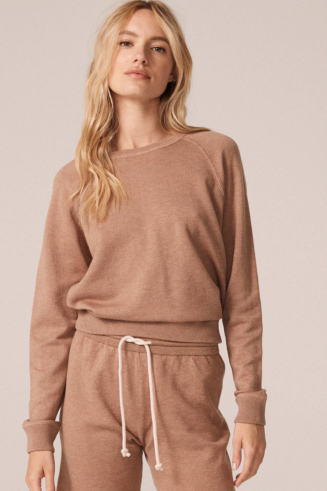 Cotton cashmere never fails to deliver elevated everyday essentials. Anita is a classic crewneck pullover with raglan sleeves and ribbed trim. Style yours with coordinating cotton cashmere pants while running errands or relaxing at home.
