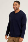 Versatile V-neck pullover sweater with ribbed cuffs and hem. Slimmer fit, size up if layering or for more of a relaxed look.