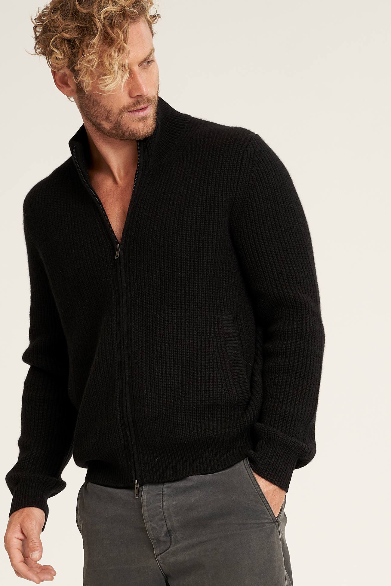 Refine your look with our polished cashmere full zip. Ribbed knit detail throughout, mock neck, and slit pockets complete the look.