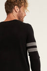 Classic crew pullover featuring bold stripes on the sleeves for a casual feel. Complete with ribbed trim.