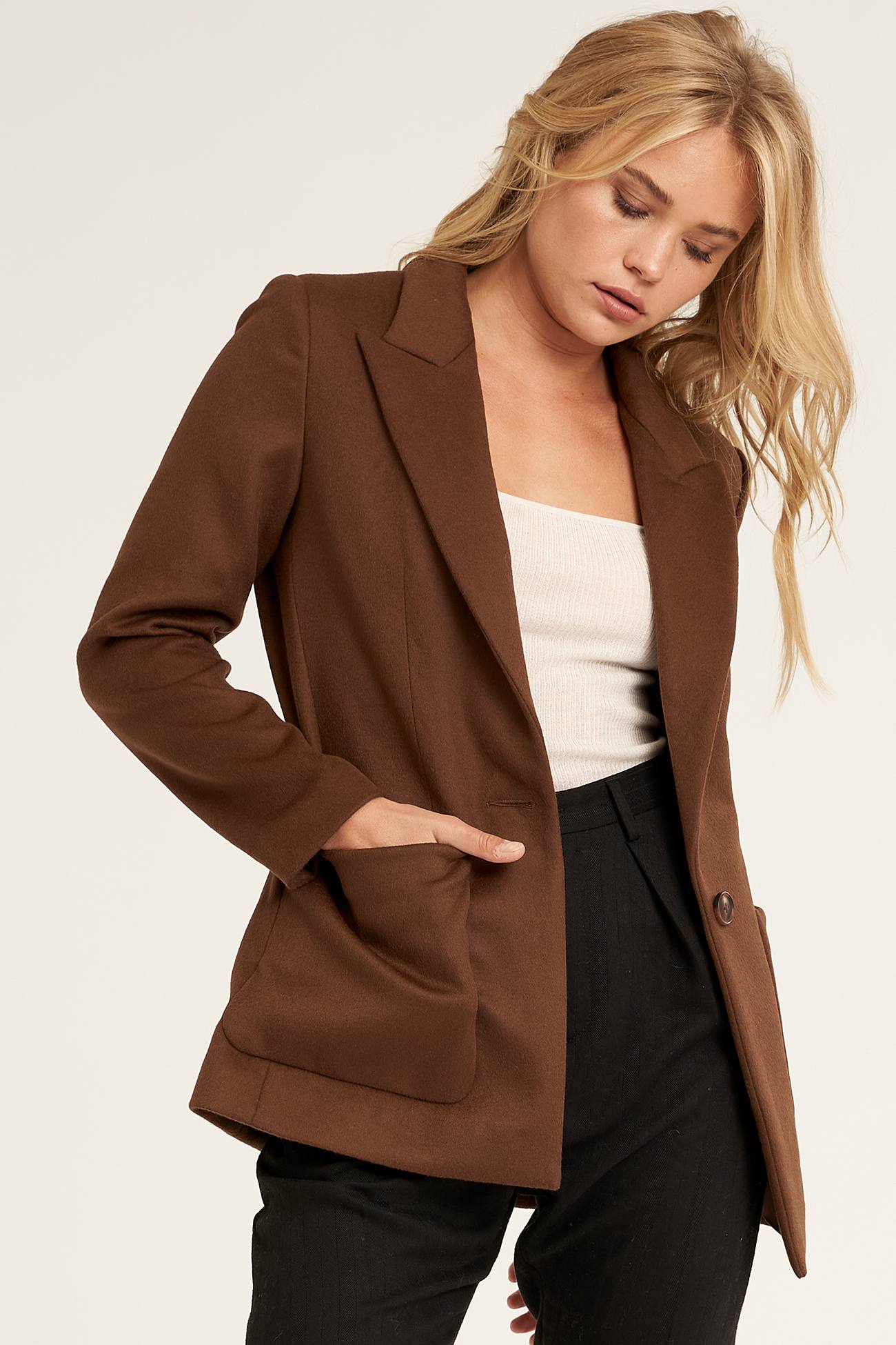 Meet the Elise, a refined and luxurious blazer cut from luxe wool. This sharp single breast blazer is completed with notch lapels, welt pockets into a clean profile. For a quick pulled together sophisticated look, style yours with a cashmere turtleneck and tailored pants.