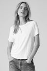 The NKD-T SS21 Collection campaign was shot by photographers David Lipman & Bryce Thompson with top models Frida Assan, Maya Stepper and Mikkel Jensen. The moody black & white campaign was captured beautifully through a minimalistic and raw approach. The collection was styled with vintage denim and bare feet, emphasizing the luxury in simplicity, all you need is a good NKD-T.