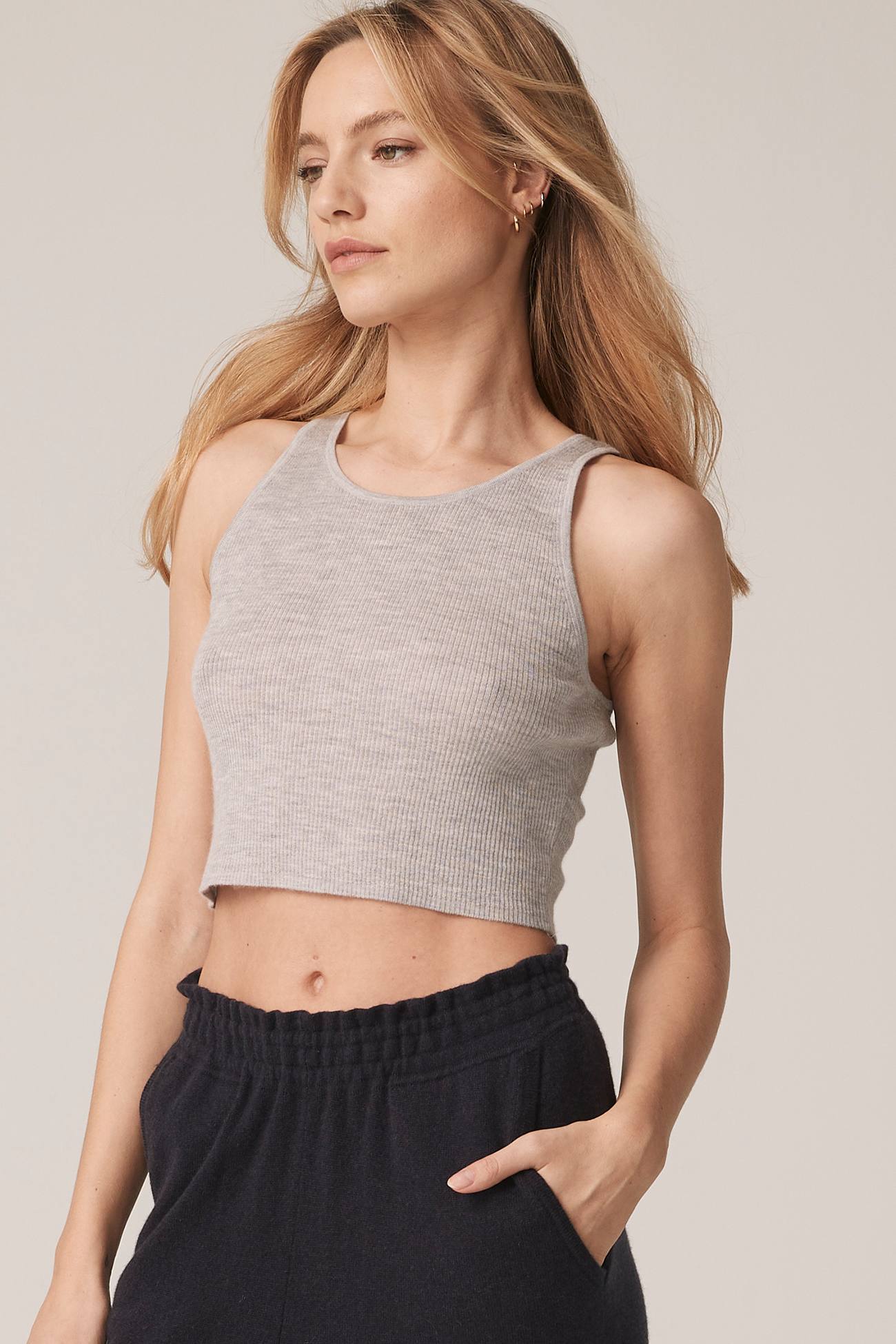 Meet Giovanna. Knit from a luxuriously soft fine rib knit cashmere, completed with a high crew neck silhouette and cropped hem. The perfect everyday tank for the laid back look.