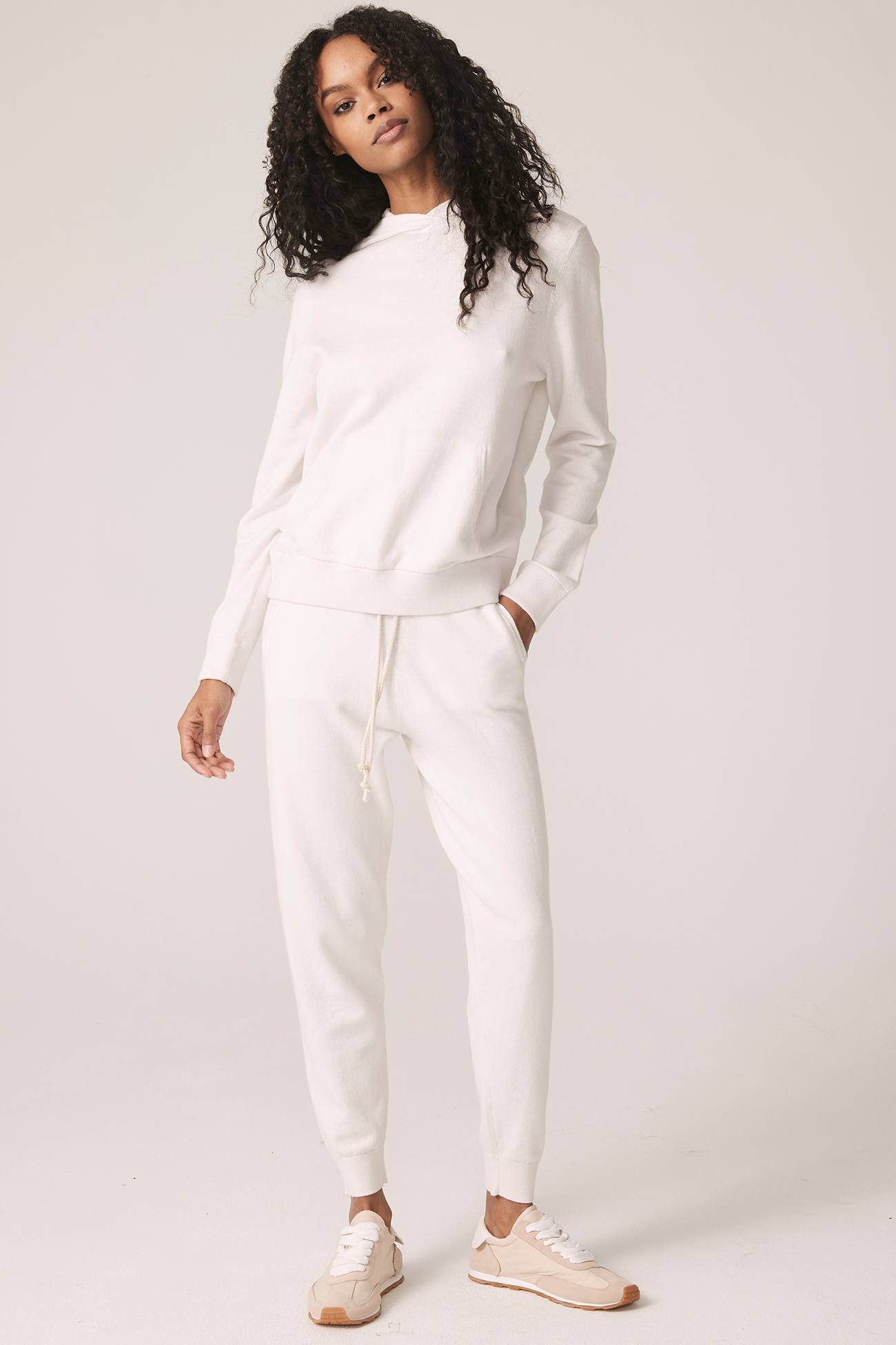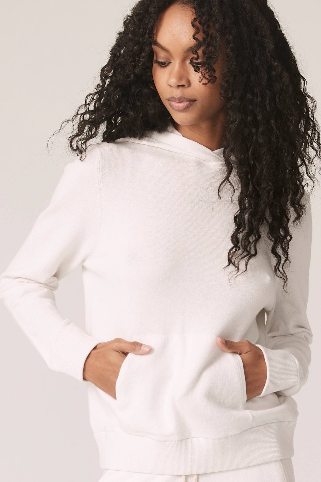 Our Lyssa cotton cashmere hoodie is the ultimate must-have in every Spring wardrobe. The perfect sweatshirt for those chilly days. Make it a trendy matching set with the Jenni shorts or Kelsey joggers.