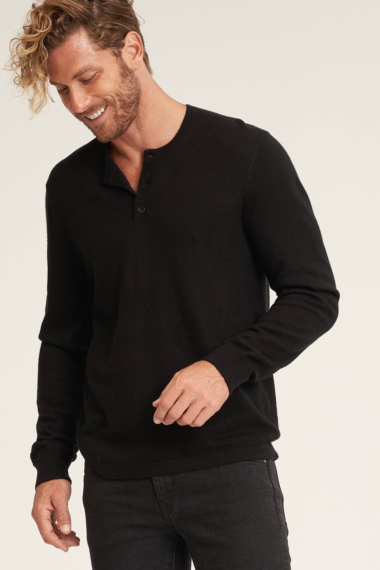 Your favorite classic Henley pullover was give an update. It's cut from pure cashmere yarn that's been boiled for extra softness. The Milan features a 3-button placket on the neckline, long sleeves in a classic fit.